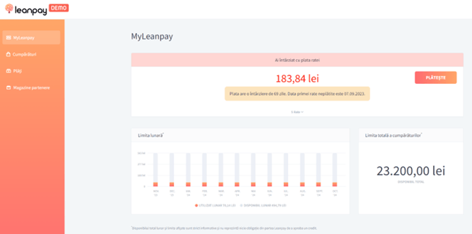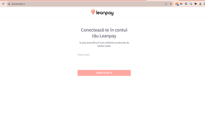 Pas 1 - Autentifică-te în contul tău Leanpay (apasă aici > MyLeanpay) sau intră pe leanpay.ro și apasă butonul MyLeanpay