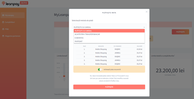 Găsești aici toate opțiunile de plată a ratelor Leanpay