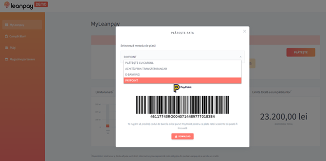 Opțiuni de plată a ratelor Leanpay - toate optiunile